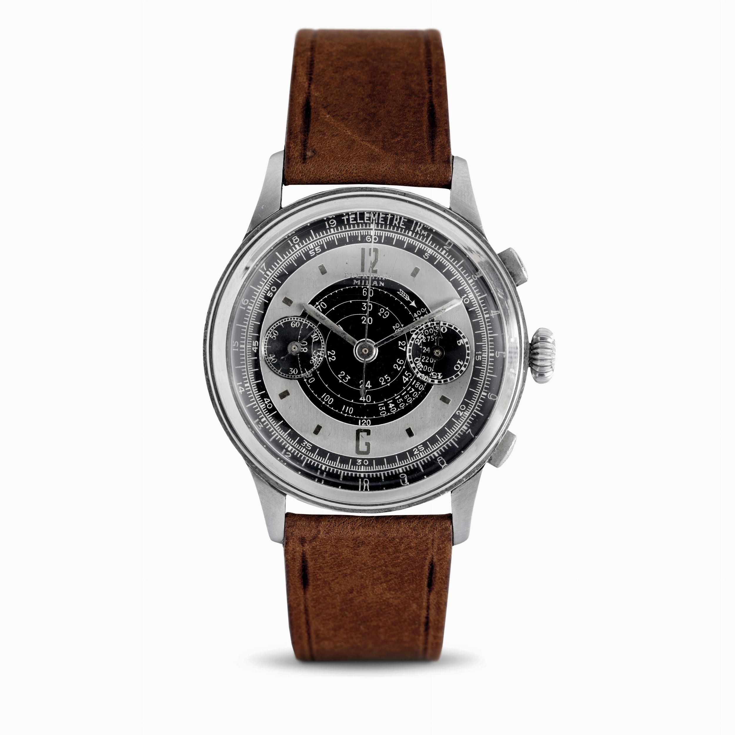 Eccezionale cronografo a carica manuale in acciaio a due contatori, quadrante tre [..]