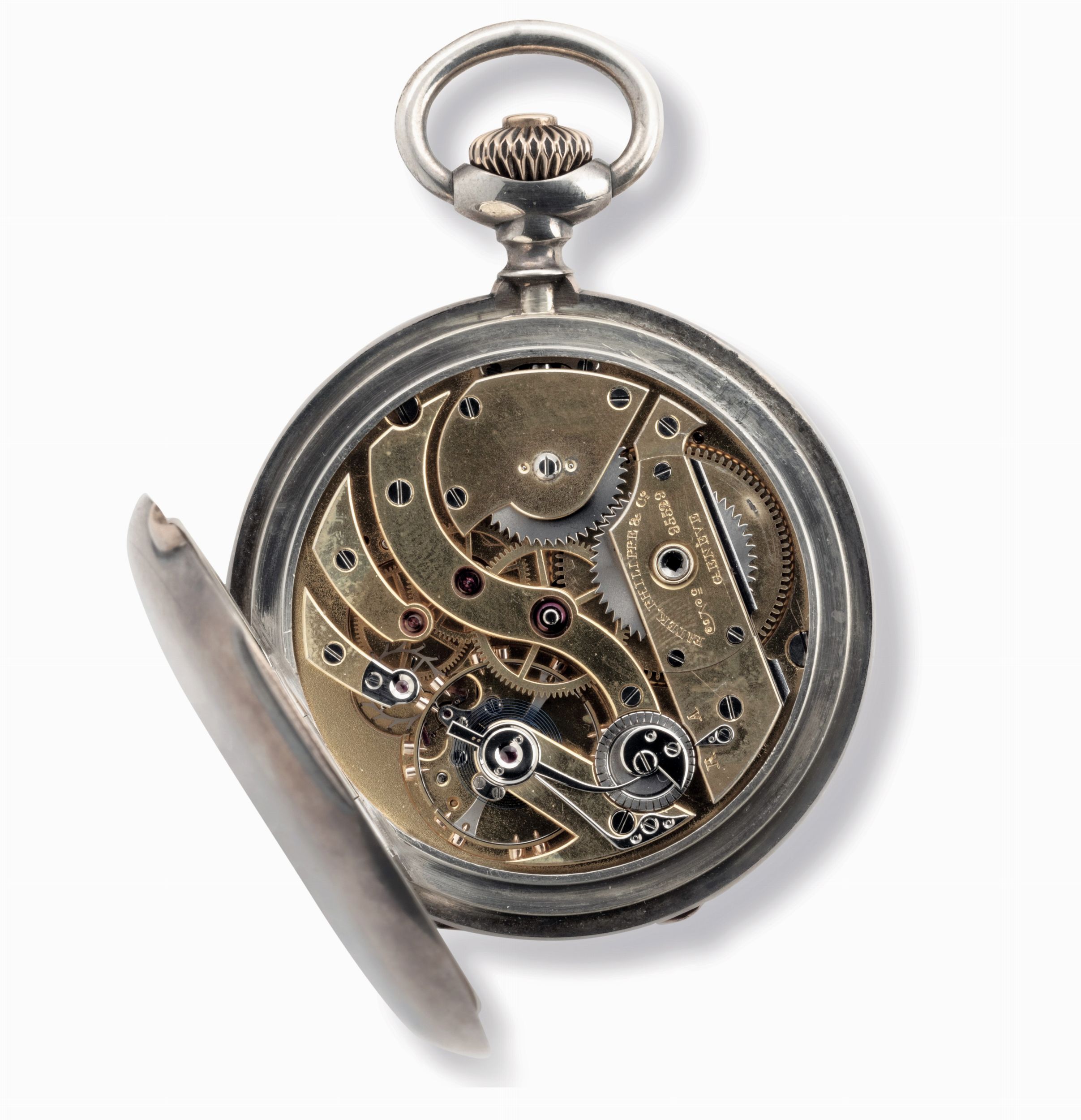 Raro orologio da tasca Hunter case in argento con cerniere in oro rosa, quadrante [..]