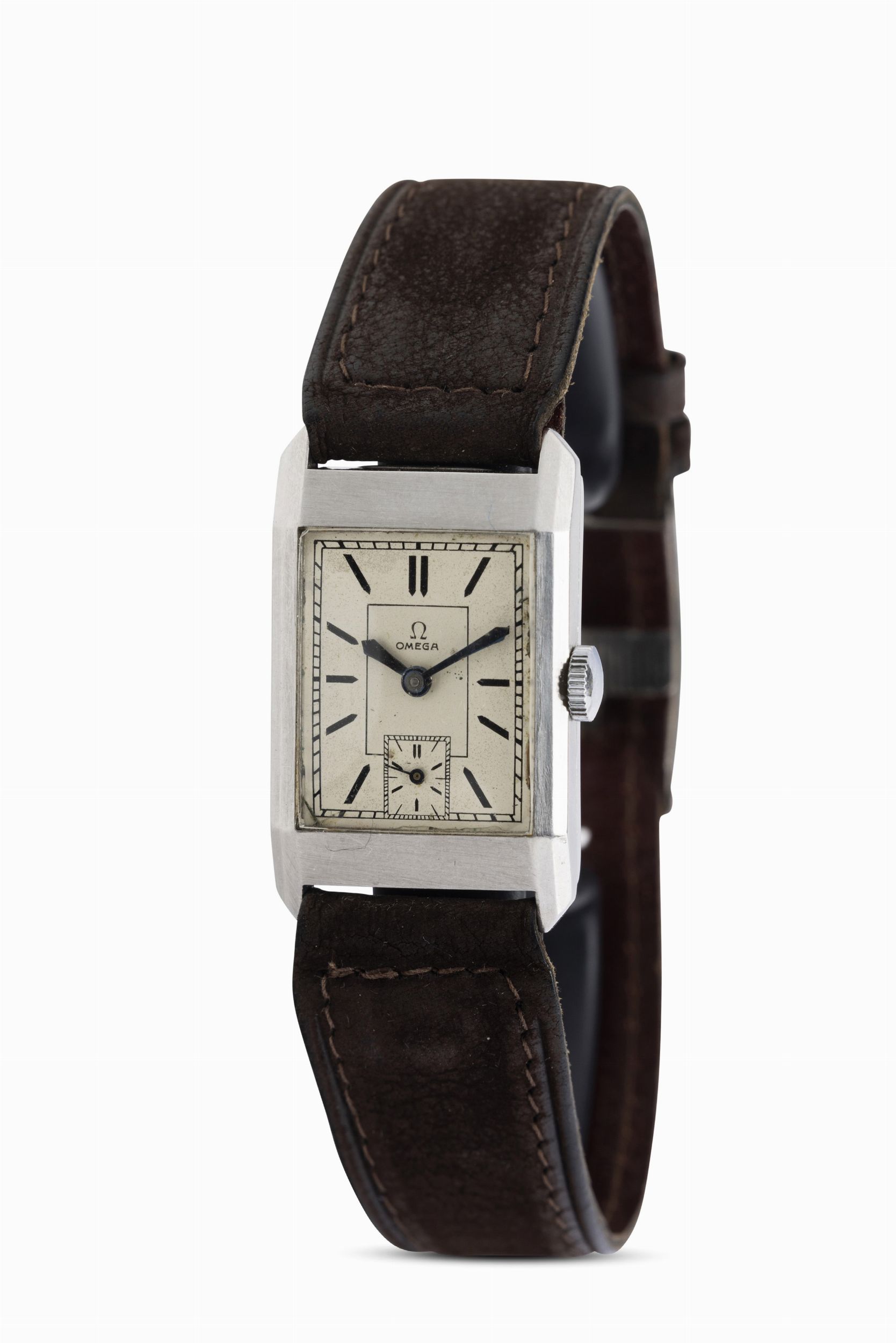 Raro Tank di forma rettangolare in acciaio staybright, quadrante argentè bitonale [..]