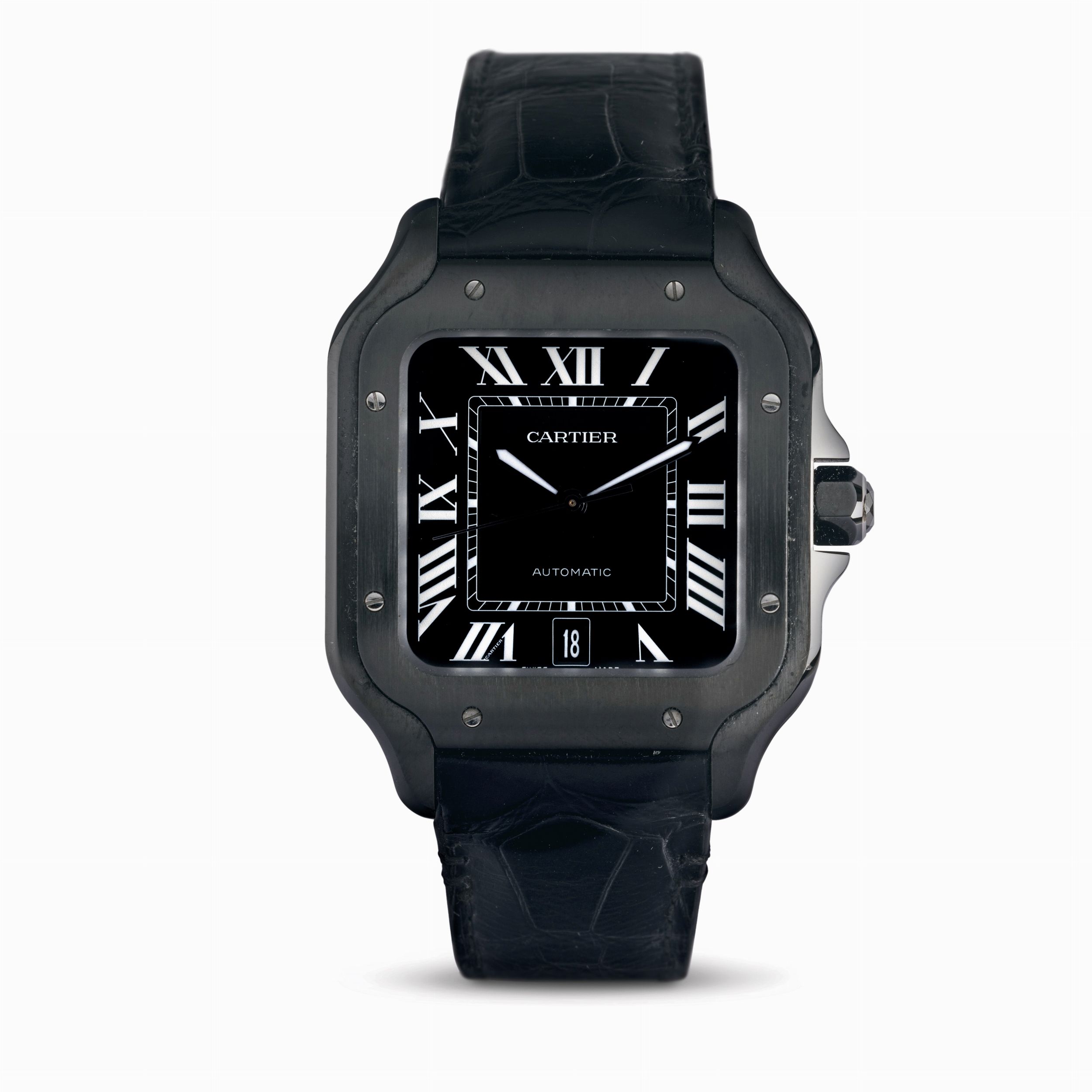 Santos automatico in acciaio trattamento DLC, quadrante nero con numeri romani bianchi [..]