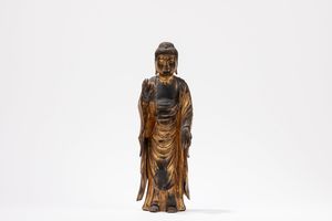 h cm 29,5 Giappone, XIX secolo Raffigurante Amithaba Buddha stante con le mani in posizione di Abhaya Mudra.