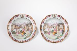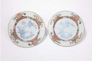 d cm 23 Cina, dinastia Qing, XVIII secolo Uno decorato con una classica scena di 'Long Eliza'; l'altro con un [..]