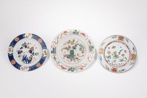 d cm 22 Cina, periodo Kangxi (1661-1722) Ben dipinti al centro in blu sotto coperta con fiori; sul bordo sono [..]