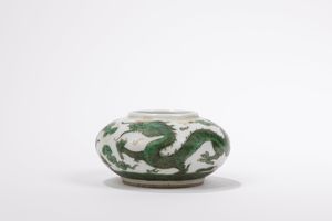 d cm 8,5 Cina, dinastia Qing, fine XIX secolo Decorato sul corpo con due draghi tra nuvole che inseguono la p [..]
