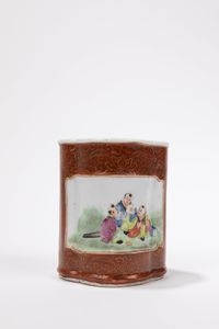 h cm 10 Cina, Repubblica di Cina (1912-1949) Dalla forma polilobata a fondo ruggine con riserve contententi bambini [..]