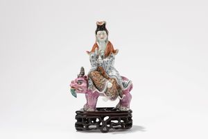 h cm 55 Cina, Repubblica di Cina (1912-1949) Dipinti e laccati con Shoulao su cervo con due attendenti e una [..]