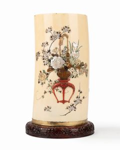 h cm 27,5 Giappone, periodo Meiji (1868-1912) Con base quadrilobata e corpo centrale di sezione quadrata decorato [..]
