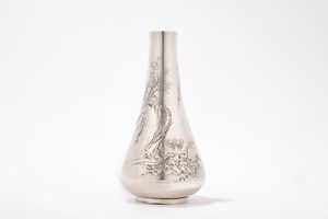 h cm 24,7 x l cm 12 x p cm 8,5 Giappone, periodo Meiji (1866-1912) Il collo e la base in argento con intarsi [..]