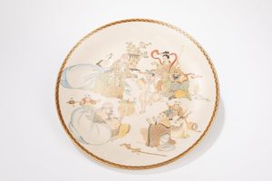 d cm 31 Giappone, periodo Meiji (1868-1912) Di forma circolare raffigurante i sette saggi della buona fortuna, [..]