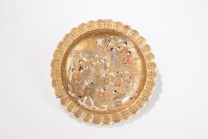 d cm 24 Giappone, periodo Meiji (1868-1912) Dalla forma lobata, è ben decorato in oro e smalti policromi con [..]