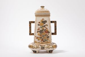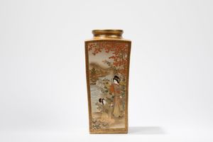 h cm 31,5 Giappone, periodo Meiji (1868-1912) Di forma quadrata decorato sui quattro lati raffiguranti scene [..]