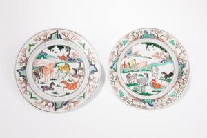 d max cm 22 Cina, periodo Kangxi (1661-1722) Entrambi ben dipinti con al centro gli otto cavalli di Wang Mu in [..]
