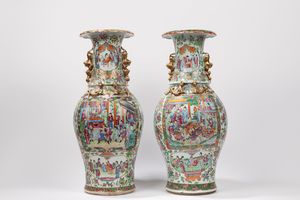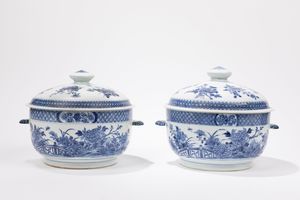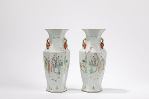 d cm 23 Cina, dinastia Qing, XVIII secolo Uno decorato con una classica scena di 'Long Eliza'; l'altro con un [..]
