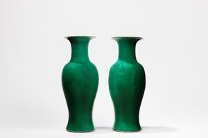 h cm 34,3 Cina, fine XIX secolo / inizio XX secolo Completamenti ricoperti da un bello smalto verde monocromo [..]