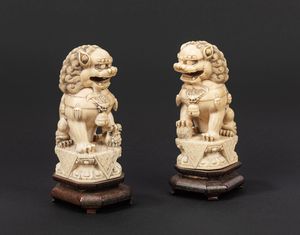 h cm 14,2 x p cm 7,1 x l cm 6 ; le basi l cm 7,2 x p cm 8,8 x h cm 3,5 Cina, fine XIX secolo Finemente intagliati [..]