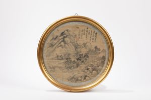 d cm 30 Cina, dinastia Qing, XIX secolo Ben dipinto con un paesaggio e iscrizioni.
