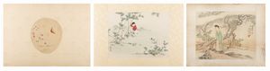 h max cm 27 x l max cm 33,5 Cina, dinastia Qing (1644-1911) I due in seta raffiguranti farfalle e fiori e una [..]