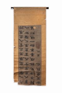 h cm 138 x l cm 57 Cina, dinastia Qing, XIX secolo Presenta iscrizioni in inchiostro e marchi rossi.