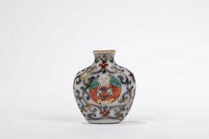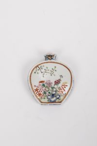 h cm 6,5 Cina, Repubblica di Cina (1912-1949) Dalla forma schiacciata, è decorata ai lati in blu sotto coperta [..]