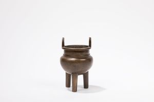 h cm 12 Cina, dinastia Qing, XVIII / XIX secolo Poggiante su tre alte gambe e dal corpo globulare, che culmina [..]