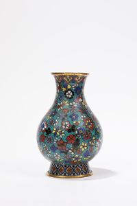 h cm 12,5 Cina, dinastia Qing, XVIII / XIX secolo Dal piede rialzato, corpo piriforme e corto con bordo svasato, [..]