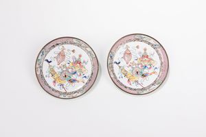 d cm 12 Cina, periodo Yongzheng (1723-1735) Magnificamente dipinti al centro nei colori della famiglia rosa con [..]