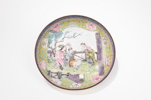d cm 28 Cina, marchio e periodo Qianlong (1735-1796) Ben dipinto nei colori della famiglia rosa, al centro raffigura [..]