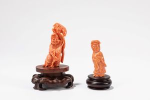 h max cm 8 Cina, prima metà del XX secolo Raffiguranti pescatore con carpa e piccola guanyin con lunghe vesti. [..]