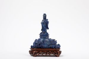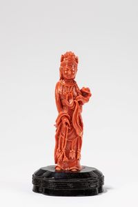 h cm 20 Cina, prima metà XX secolo Intagliato con una guanyin coronata in posizione benedicente. Poggia sulla [..]