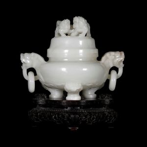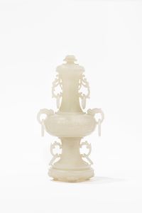 h cm 10,5 Cina, dinastia Qing, fine XIX secolo Magnificamente scolpito a forma di vaso con coperchio che poggia [..]