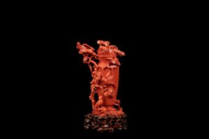 h tot cm 38 x l cm 40 Cina, dinastia Qing, fine XIX secolo Ben intagliato con quattro rami, sono raffigurate [..]