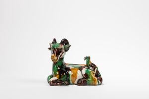 h cm 14 x l cm 17 Cina, periodo Kangxi (1661-1722) Ben modellata a forma di capra col cucciolo sulla groppa.