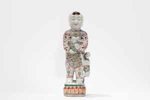 h cm 32,5 Cina, periodo Kangxi (1661-1722) Ben modellato a forma di ragazzo stante su una base di petali di loto [..]