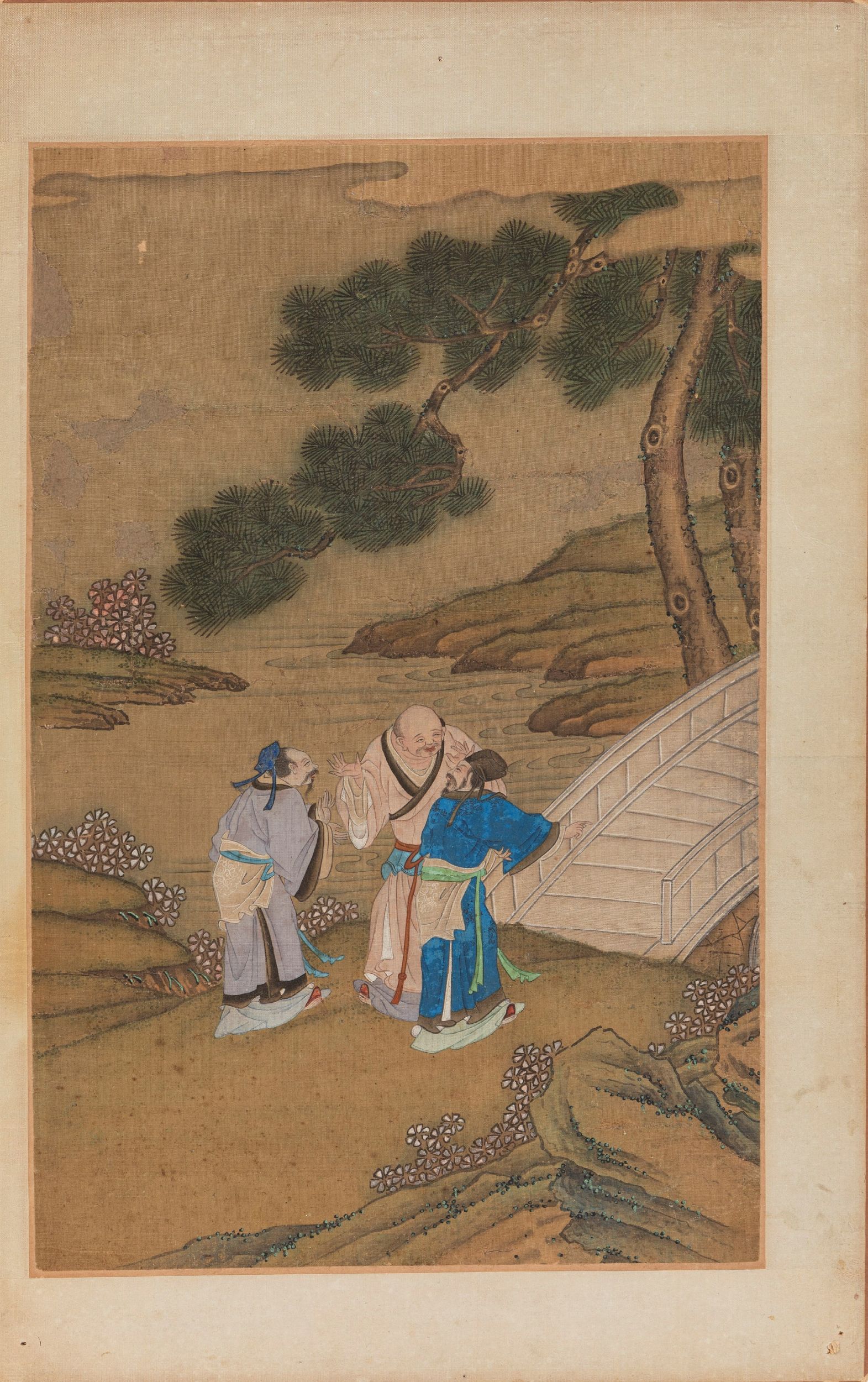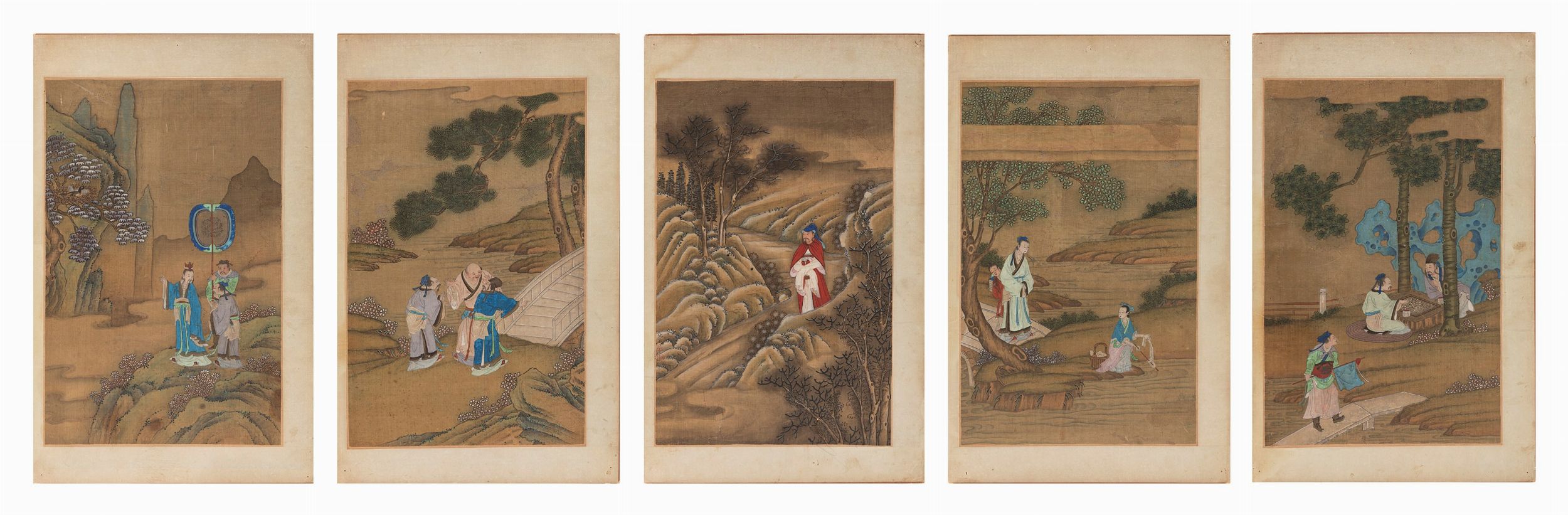 Cina, dinastia Qing, XIX secolo Ben dipinti, raffigurano diversi personaggi in giardini.