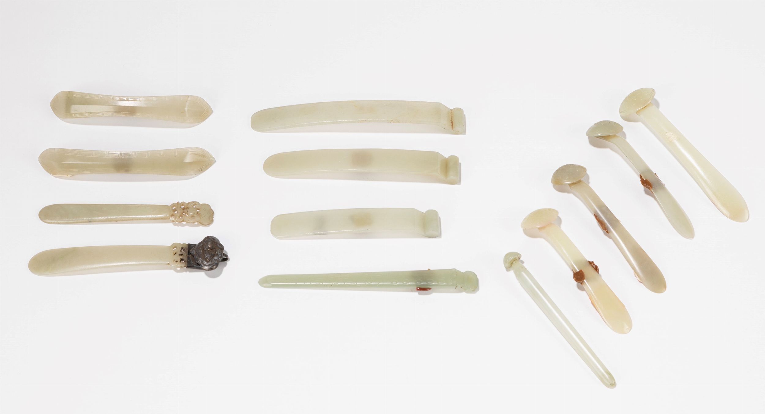 CINQUE SCETTRI RUYI E OTTO FERMACARTE IN GIADA