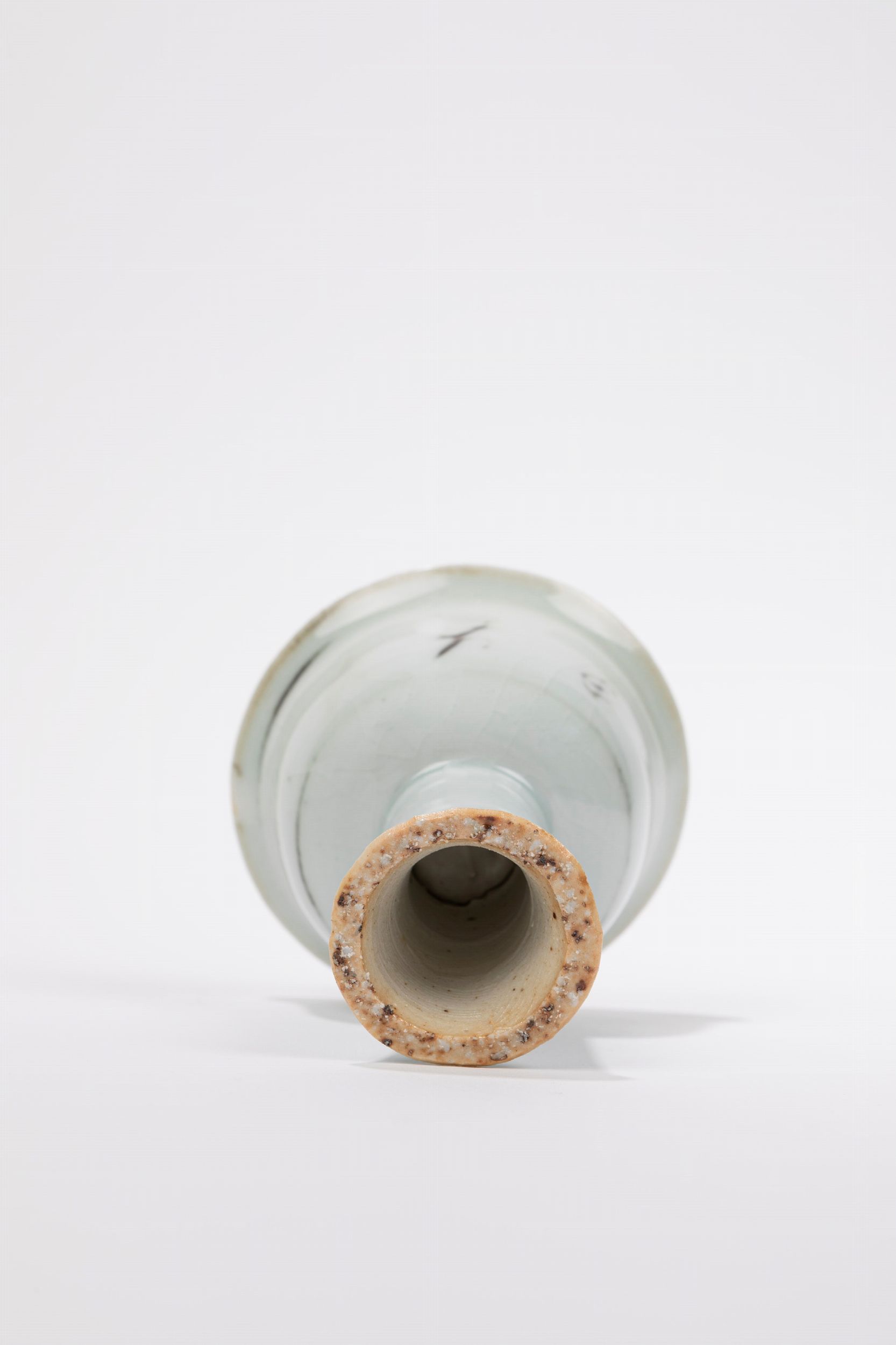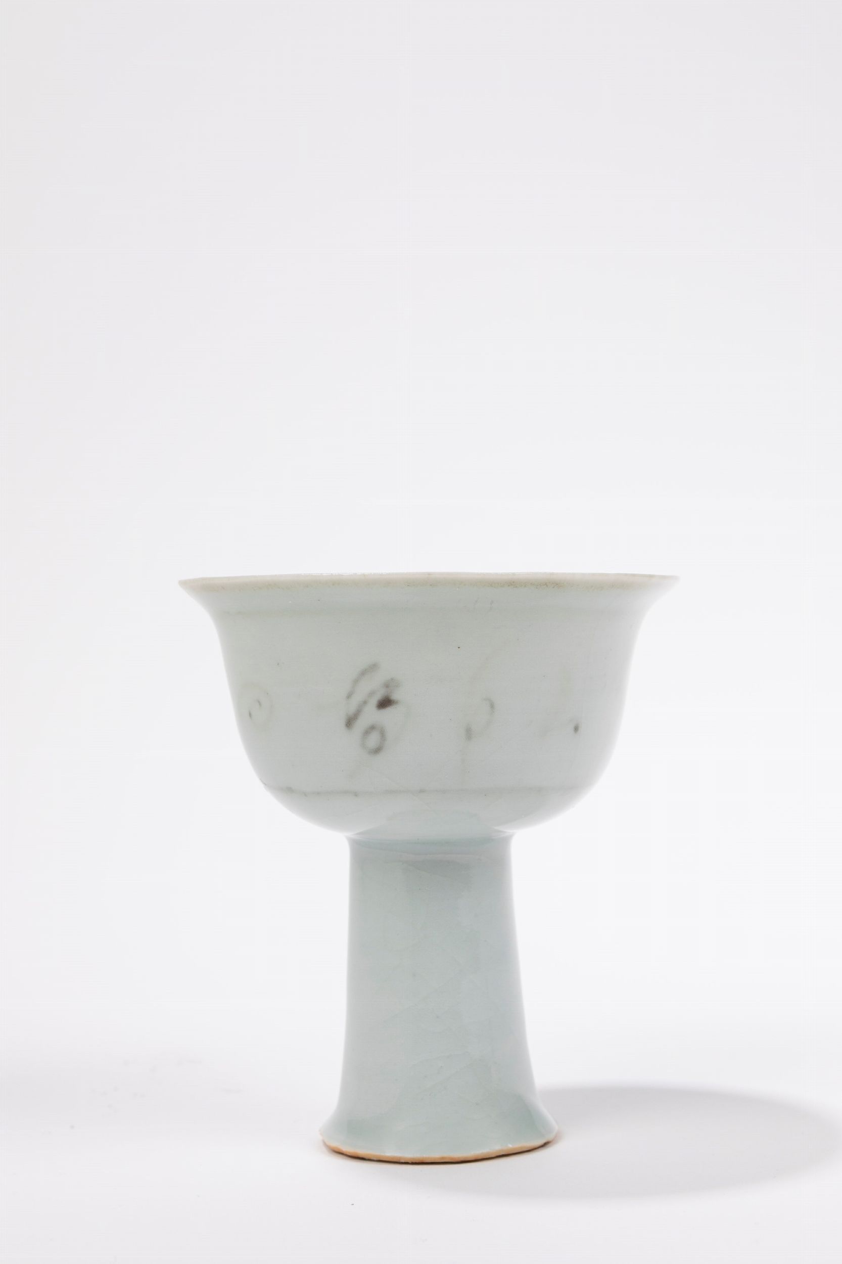 Cina, dinastia Yuan (1279-1368) L'esterno della coppa è iscritto in rosso rame sotto coperta con dieci caratteri indecifrabili in scrittura corsiva tra due righe, al centro dell'interno presenta un altro carattere; è ricoperta complessivamente da uno smalto traslucido ad eccezione dell'interno e della base del piede del gambo cavo.Provenienza: da una collezione privata italiana.Note di catalogo:Un oggetto quasi identico è stato venduto da Christie's, asta live 17741, An Important Collection of Chinese Ceramics from a Private Collection, Hong Kong, 27 Novembre 2019, lot. 2929.Per un oggetto simile si veda anche l'oggetto esibito alla Oriental Ceramic Society di Hong Kong, Exhibition of Trade Ceramics, articolo 89. Si veda anche Chinese Blue and White Ceramics, S.T. Yeo & Jean Martin, Arts Orientalis, 1978, pag. 96, pl. 2, n° 3.