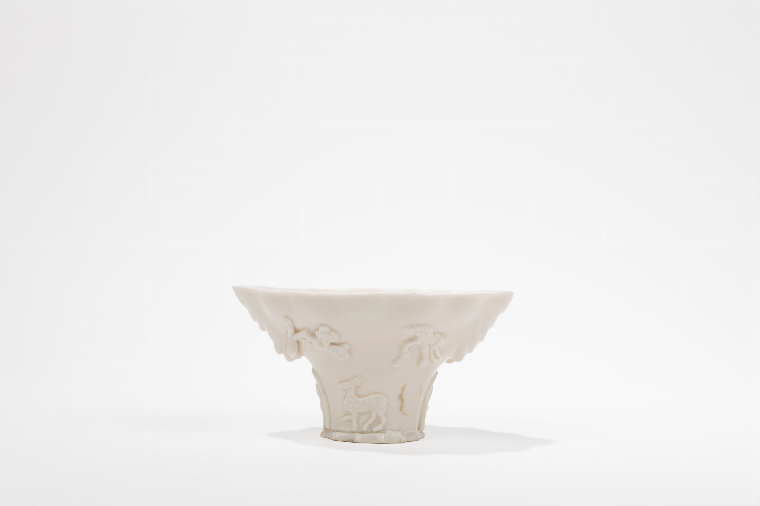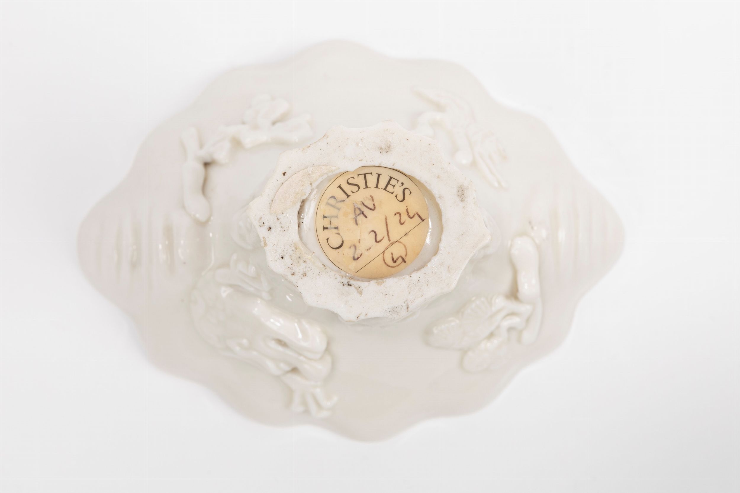 h cm 7,5 x l cm 14 Cina, periodo Kangxi (1661-1722) Ben modellata a forma di nuvola, è ben decorata a rilievo con un dragone che scende dalle nuvole e uno che sorge dalla terra, un cervo e una cicogna tra rocce e alberi; al centro della base reca un'etichetta di Christie's.