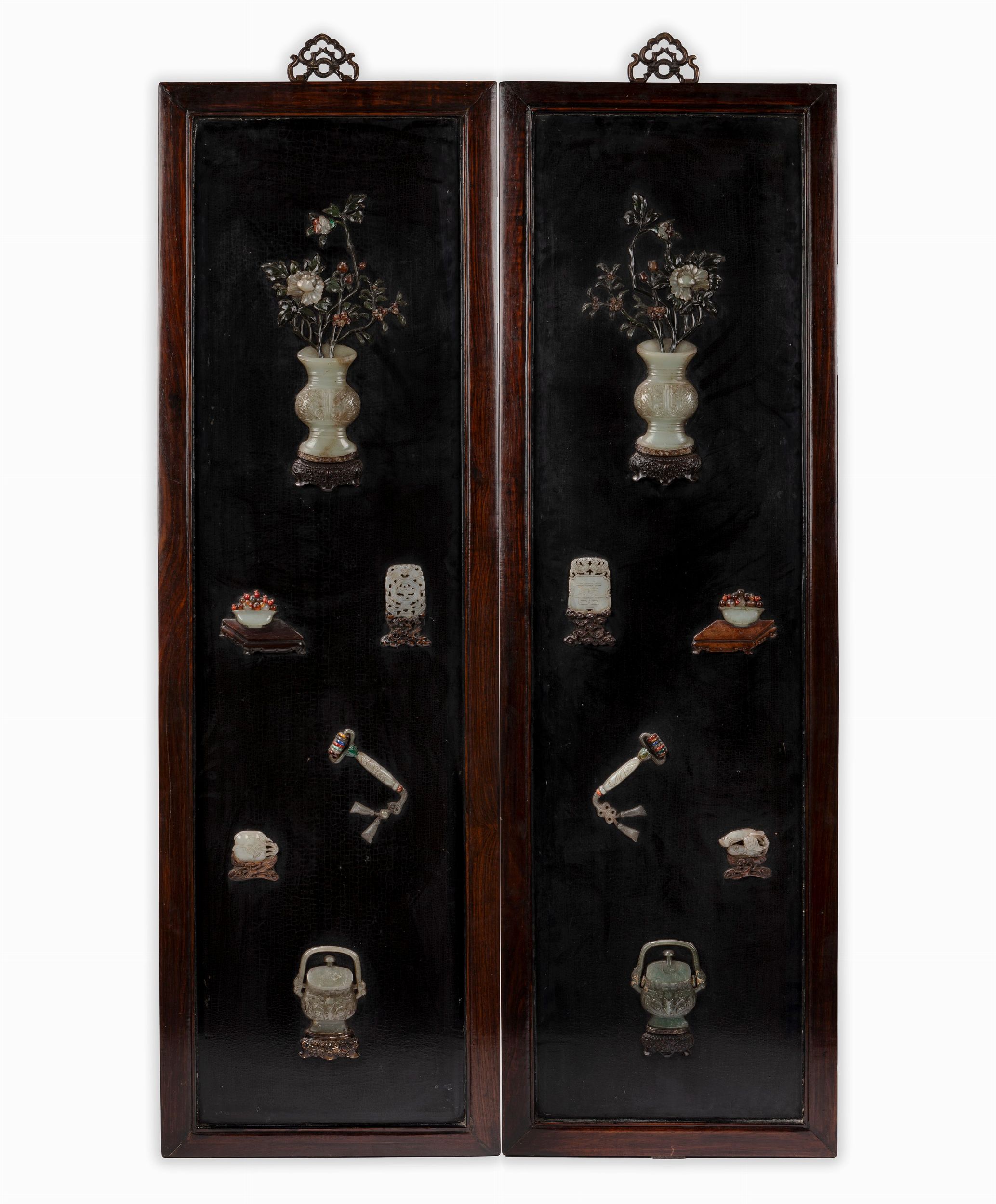 COPPIA DI PANNELLI IN LEGNO LACCATO E GIADA