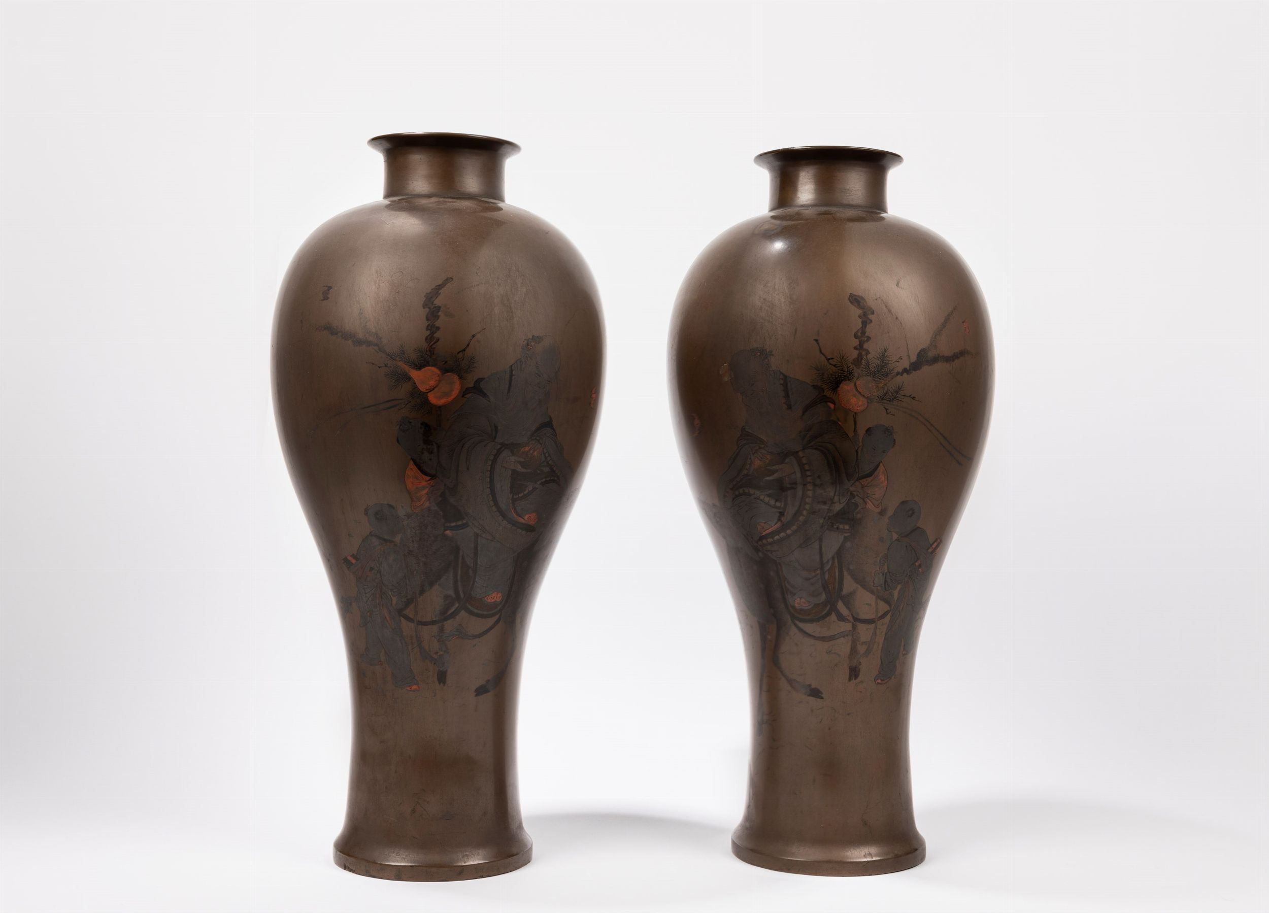 Cina, Repubblica di Cina (1912-1949) Dipinti e laccati con Shoulao su cervo con due attendenti e una cicogna.