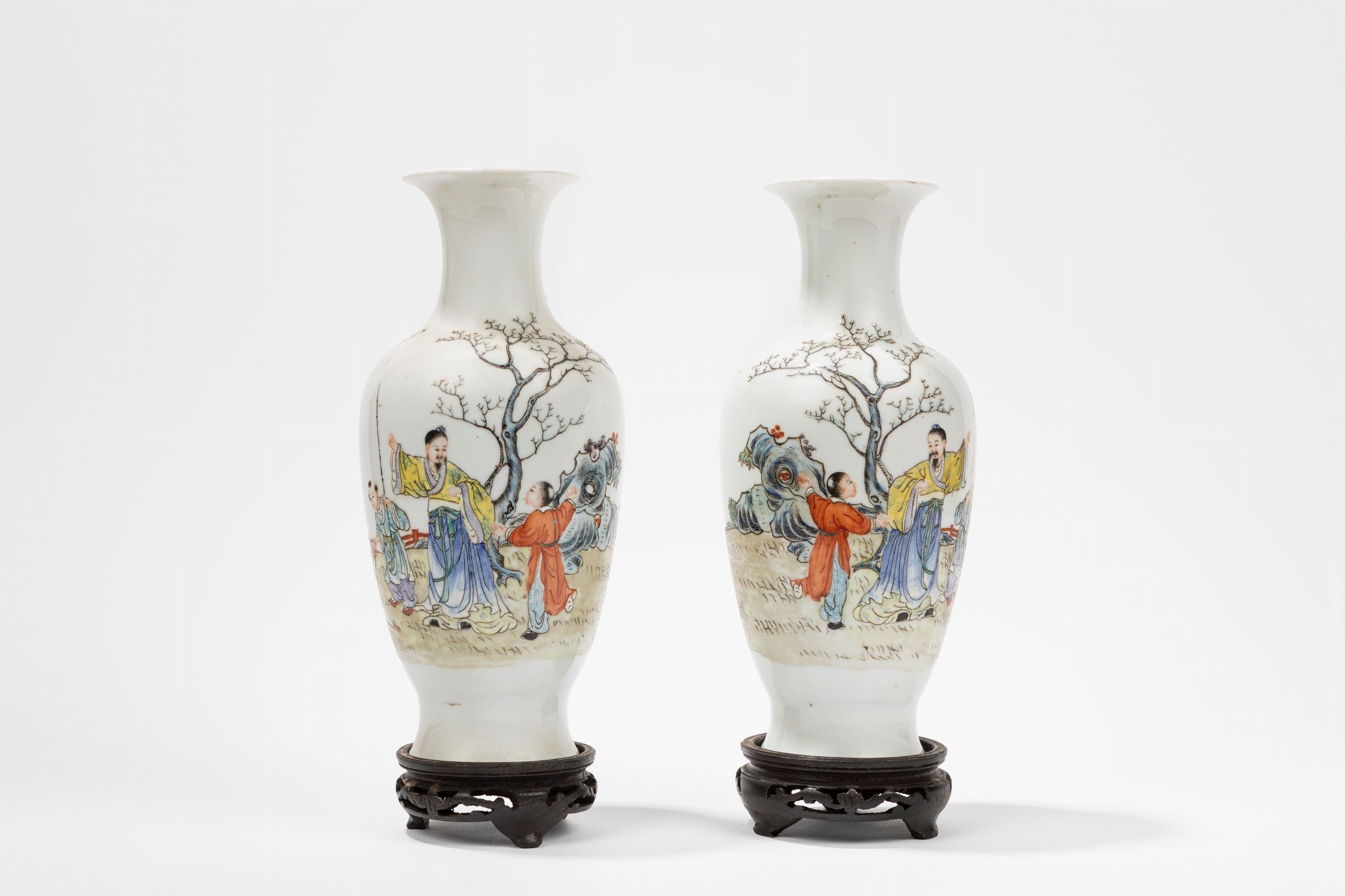 Cina, Repubblica di Cina (1912-1949) A forma di colonna di balaustro con piede rialzato, decorato con saggio e due bambini che giocano in un giardino, al centro della base reca il marchio a quattro caratteri in rosso ferro di Hongxian.