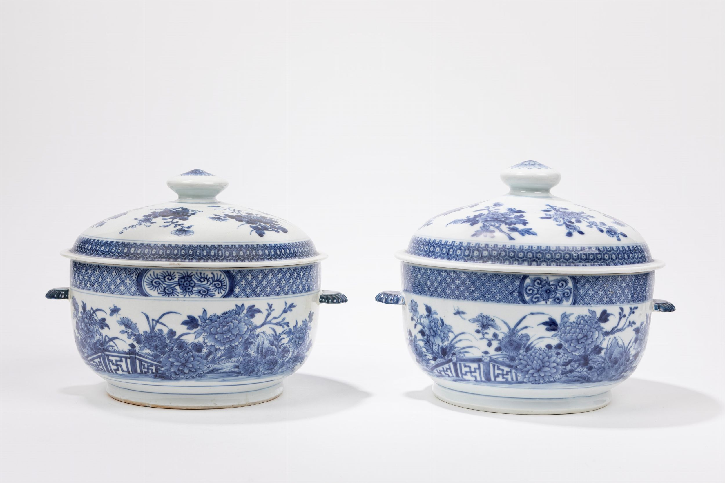 COPPIA DI ZUPPIERE IN PORCELLANA BIANCA E BLU