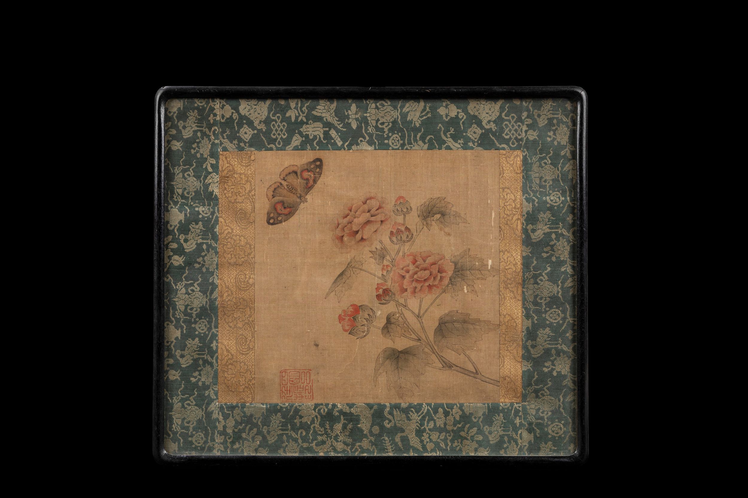 Cina, dinastia Qing, XIX secolo Ben dipinto, raffigura farfalle tra fiori; reca un marchio impresso in rosso.