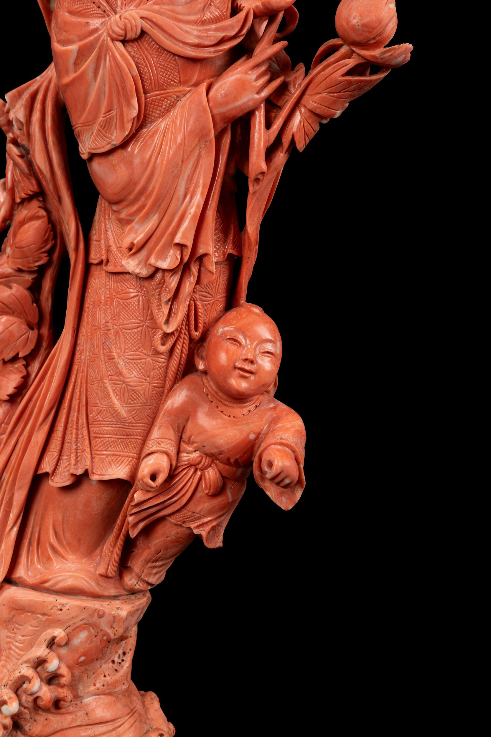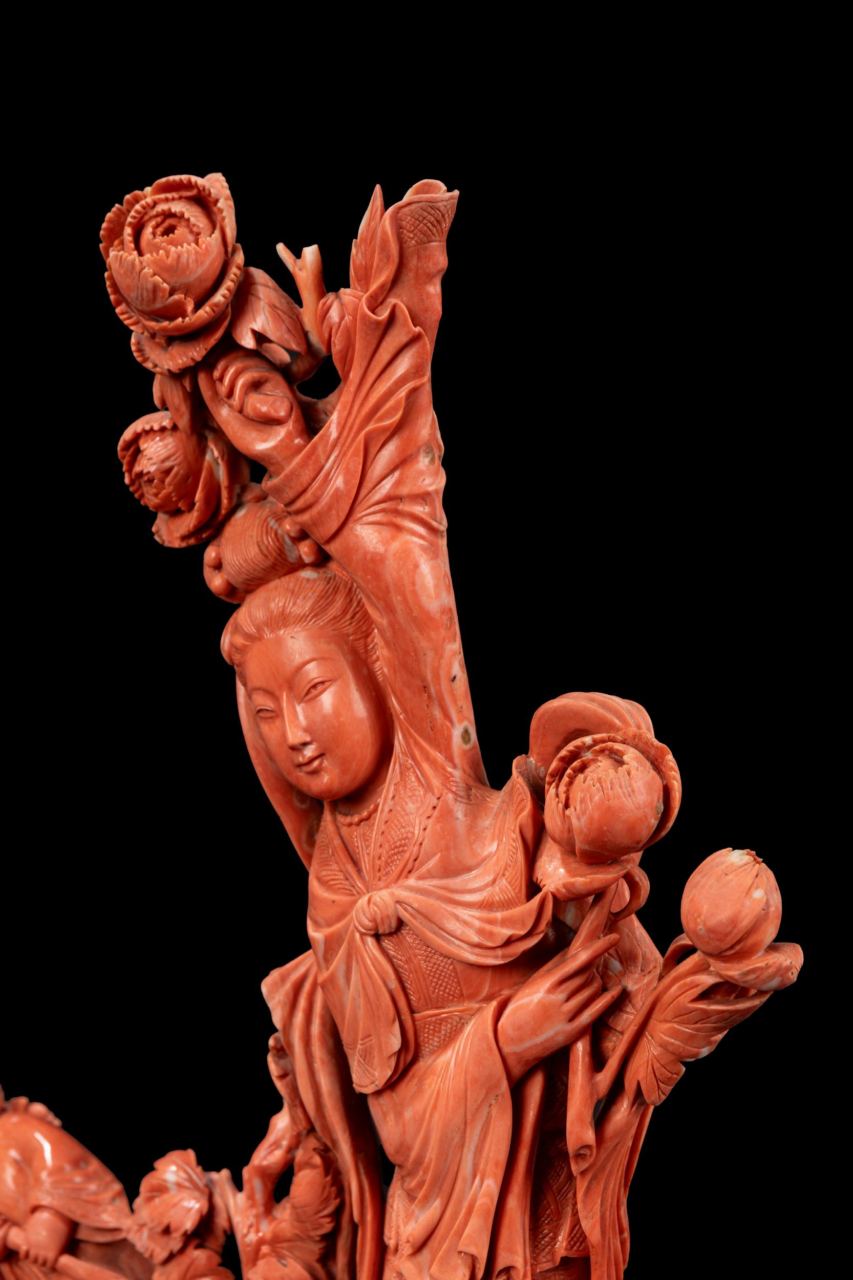 ☼GRANDE INTAGLIO IN CORALLO ROSSO SCUOLA DI PECHINO