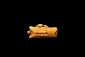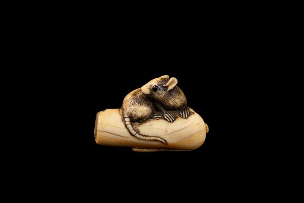 Raffigurante un topo sdraiato su una candela con la testa rivolta all'indietro e la coda che striscia da un lato.
