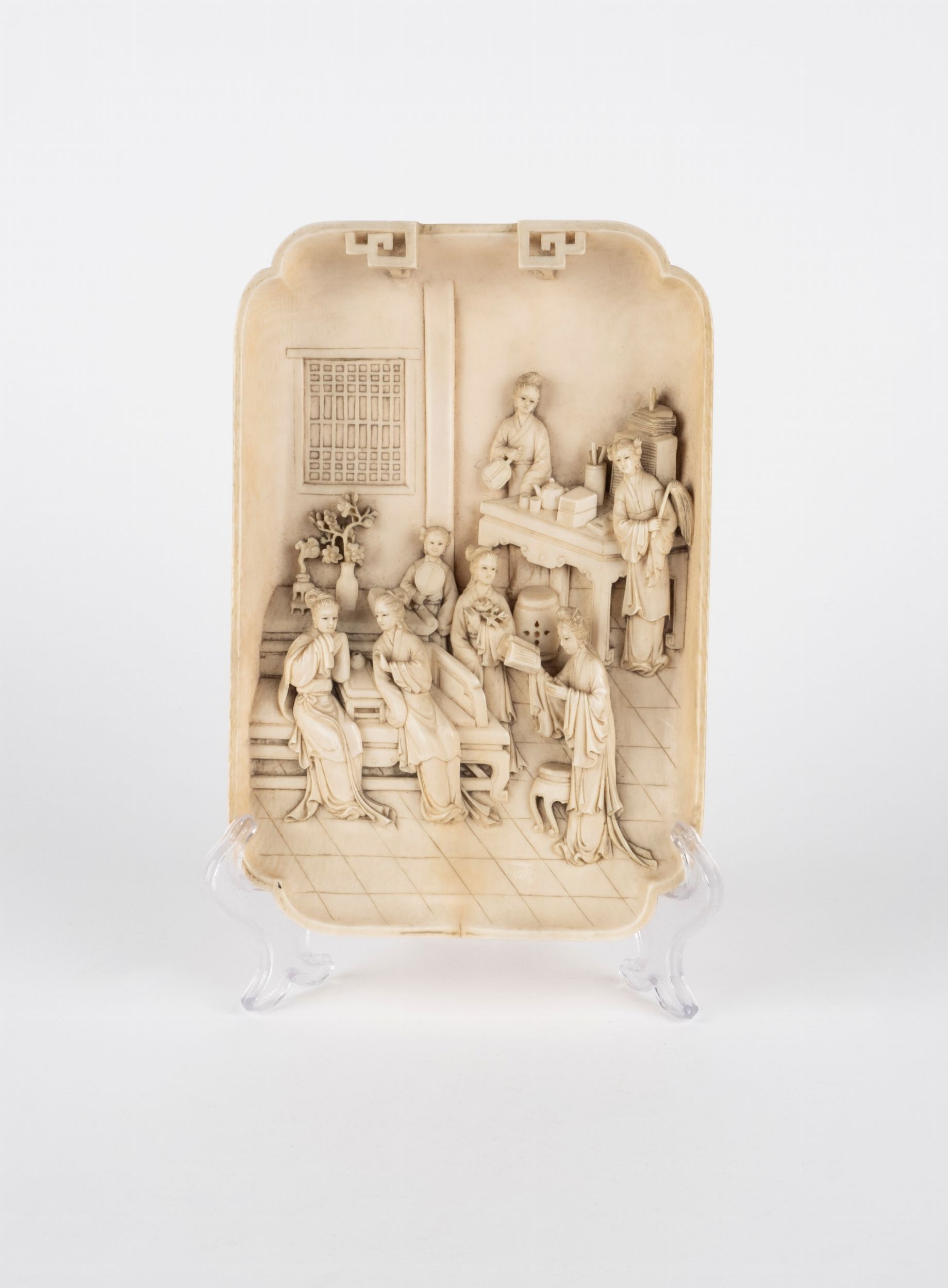 Finemente intagliata a motivo di figure femminili in interno di palazzo.Per il seguente lotto è disponibile la certificazione CITES.