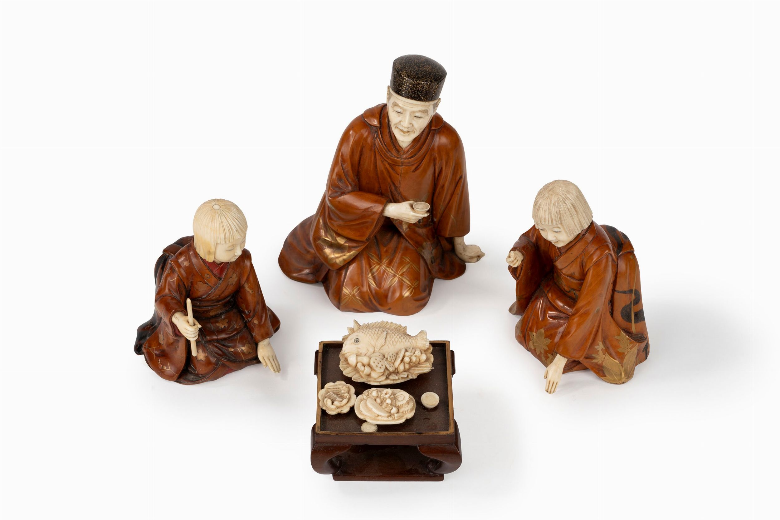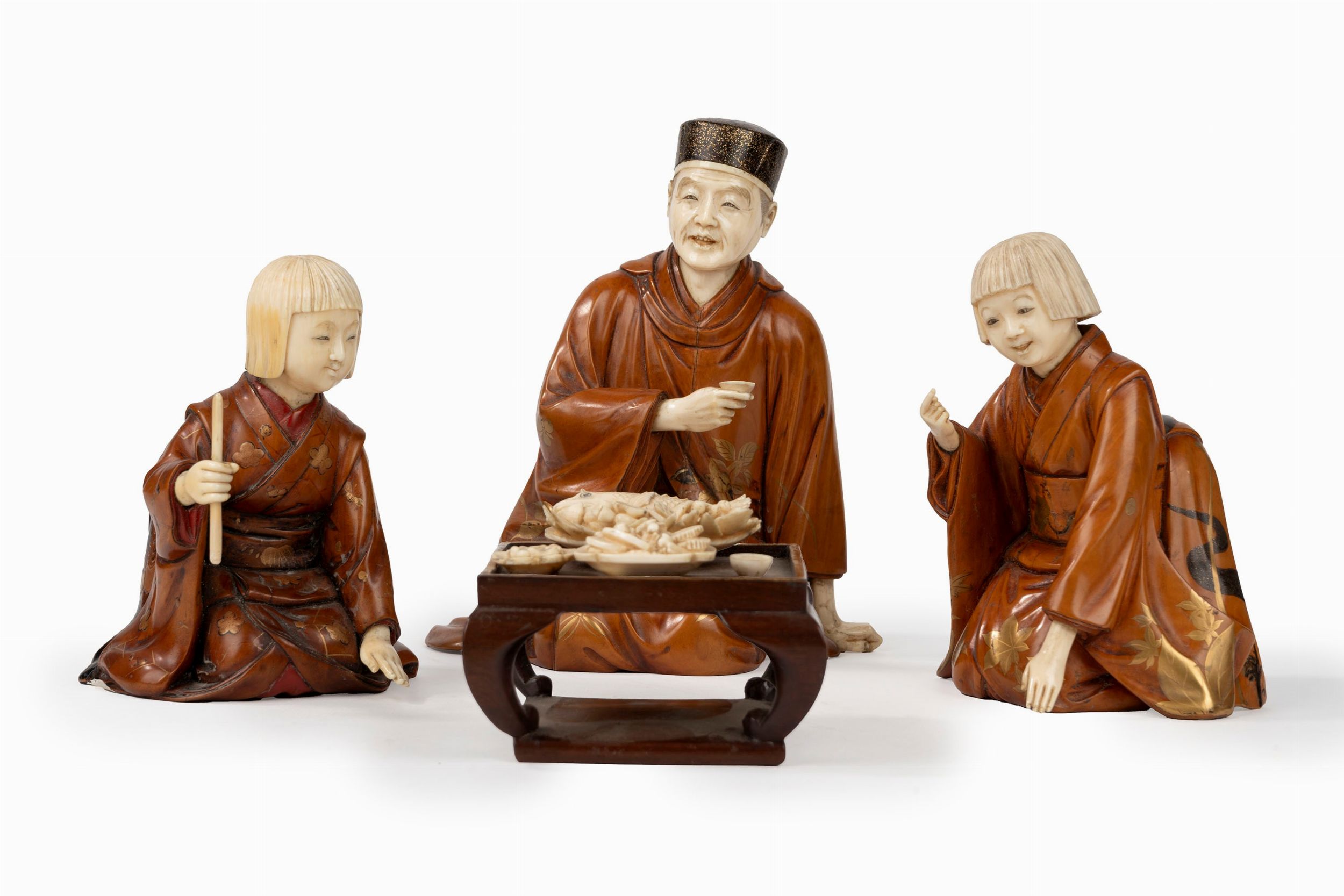 Il gruppo è composto da un uomo seduto che banchetta con due fanciulle, firmato sotto la base. Per il seguente lotto è disponibile la certificazione CITES