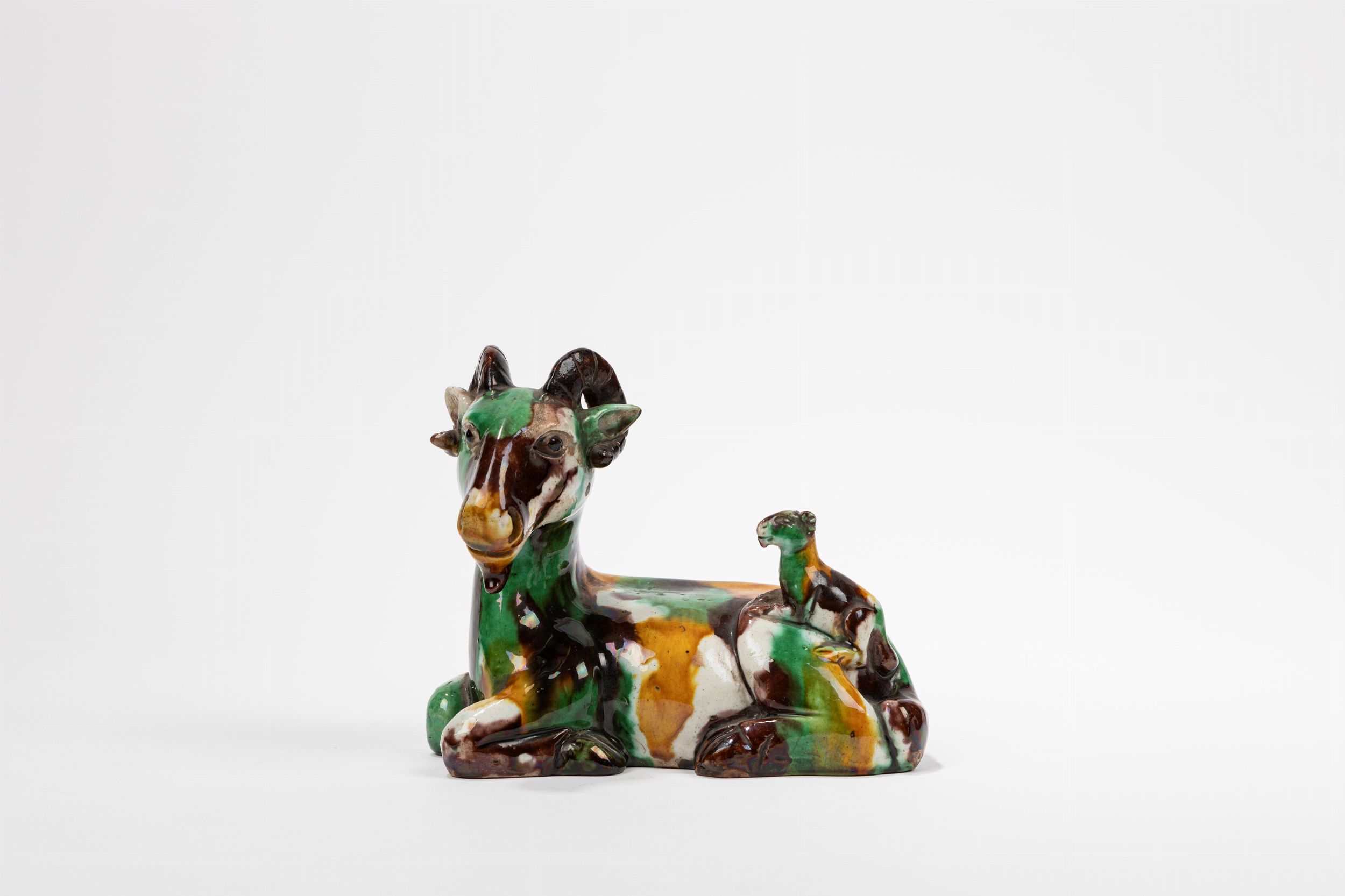 Cina, periodo Kangxi (1661-1722) Ben modellata a forma di capra col cucciolo sulla groppa.