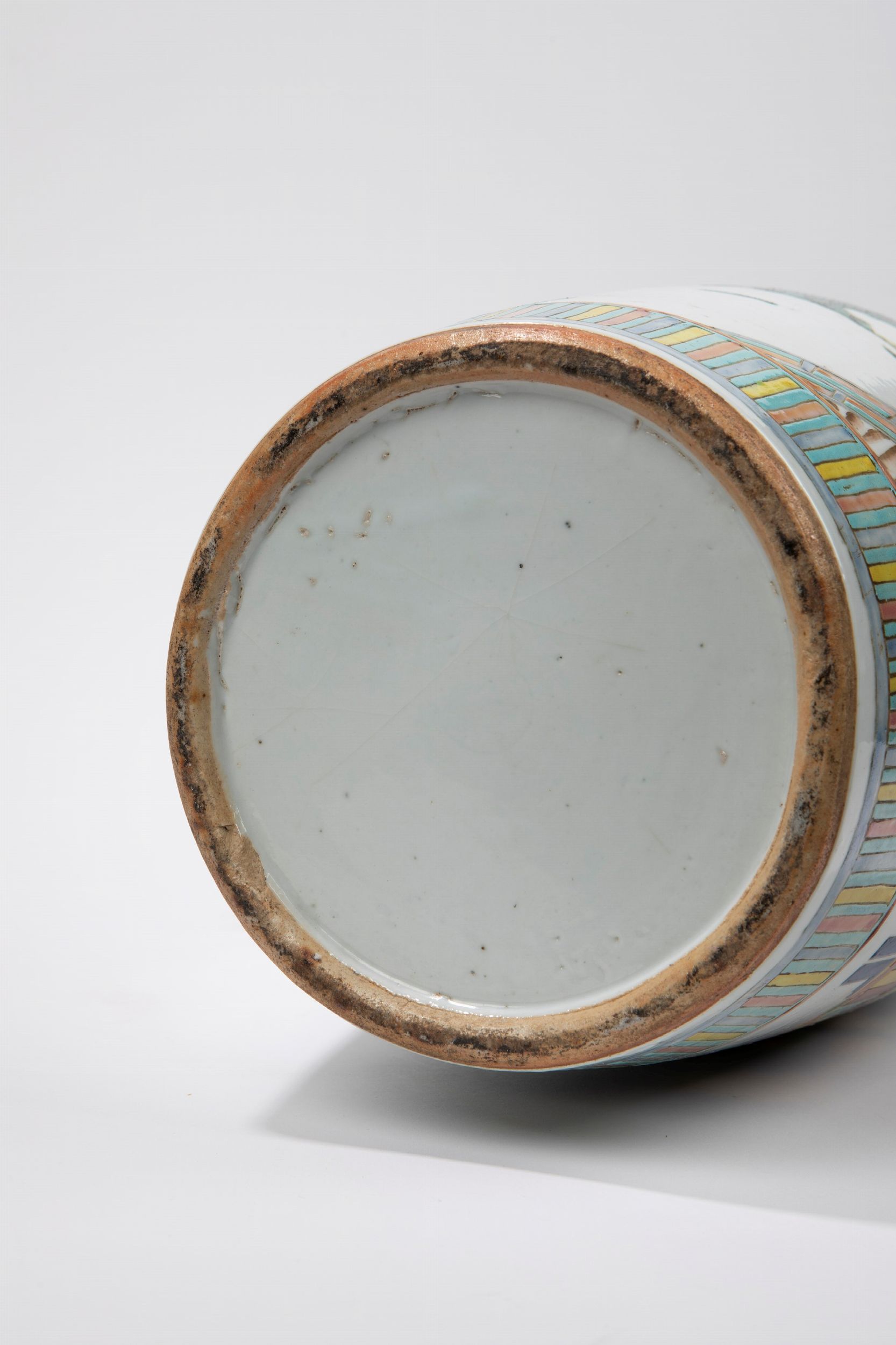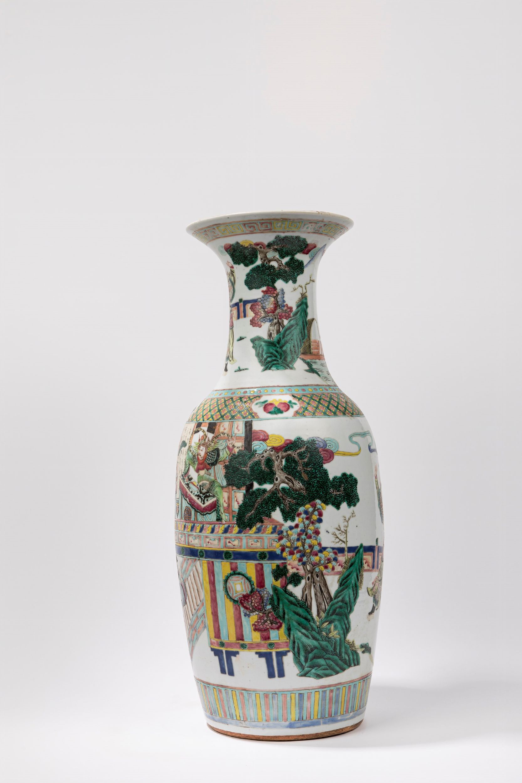 Cina, dinastia Qing, fine XIX secolo Dalla forma a colonna di balaustra e dipinto sul corpo e sul collo con scene continue di personaggi in giardini.
