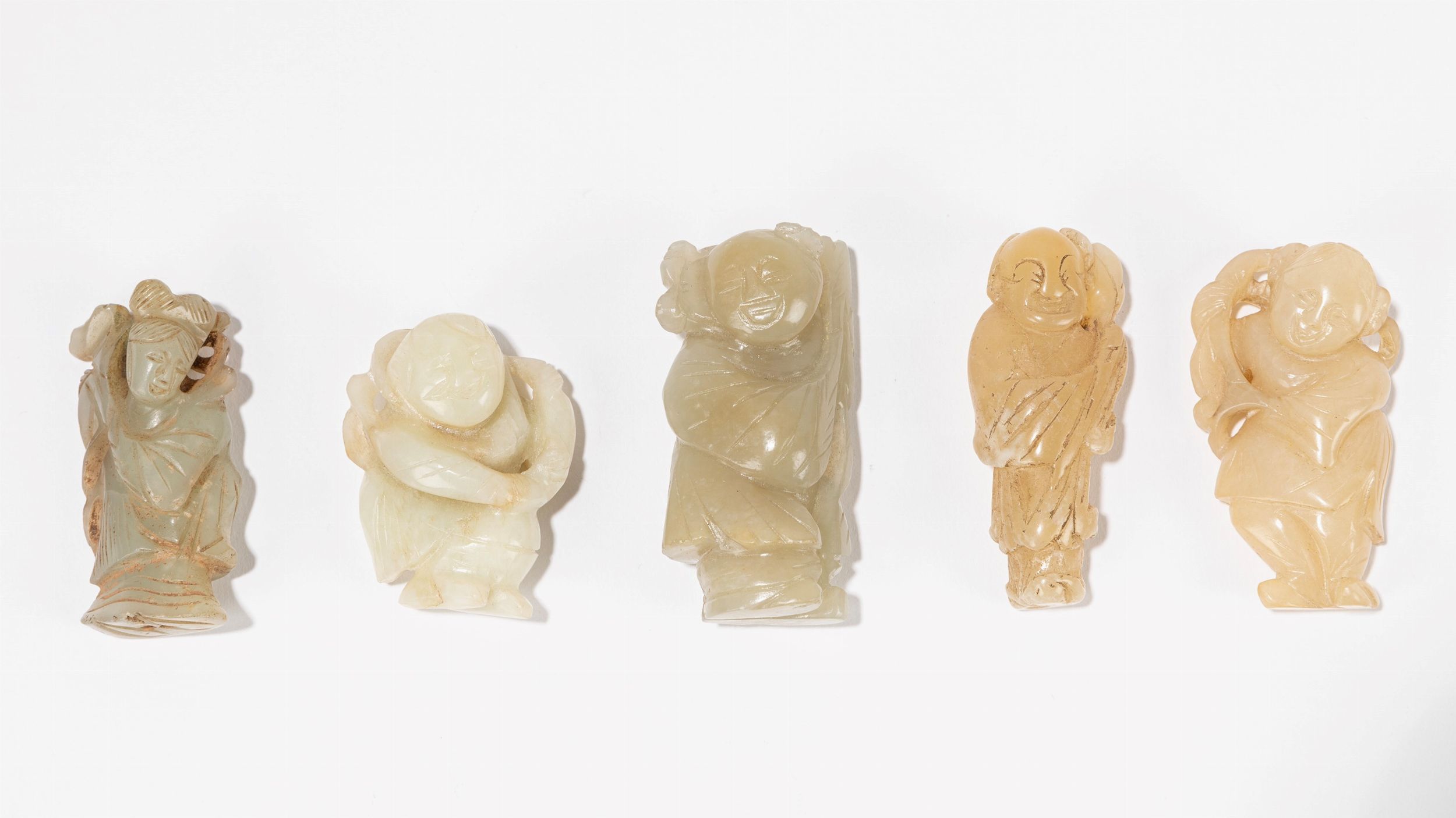玉雕像一组五件,中国,清朝,十九世纪/二十世纪