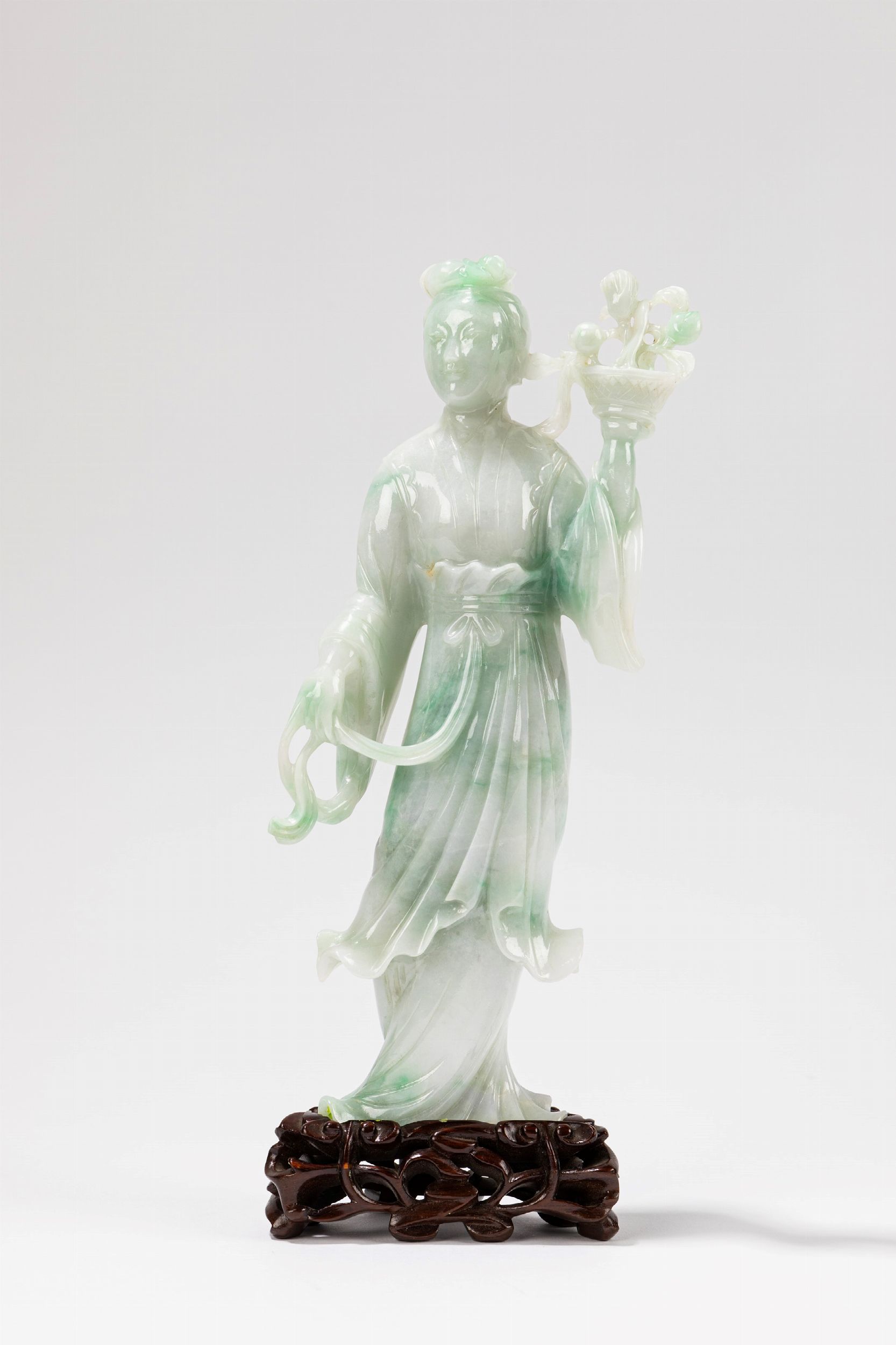 Cina, XX secolo Raffigurante dama stante con vaso di fiori. Poggia sulla sua base in legno.